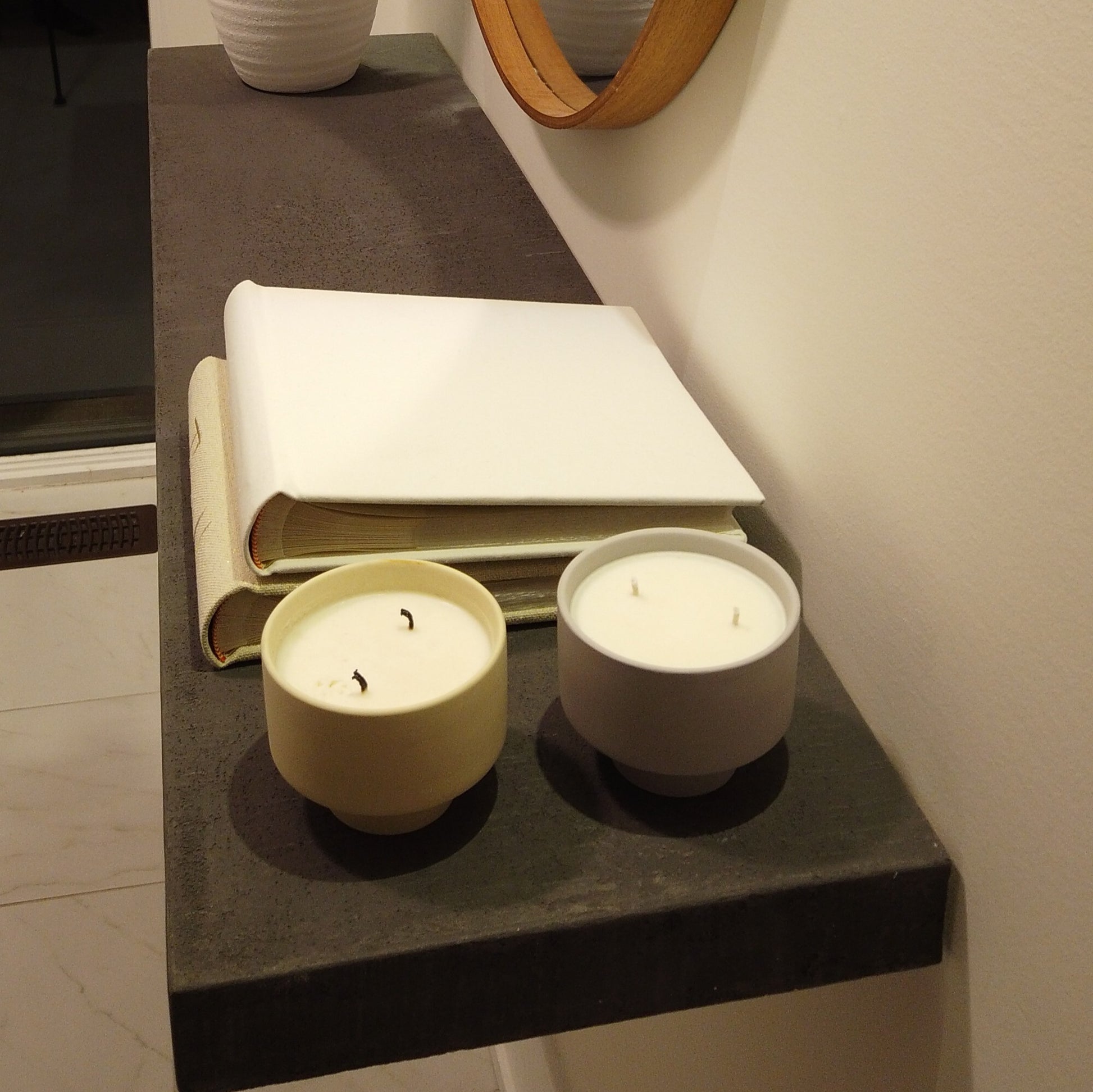 Each piece features subtle natural variation in texture and tone due to the hand-applied finish. This is an intentional characteristic of artisan micro-cement.